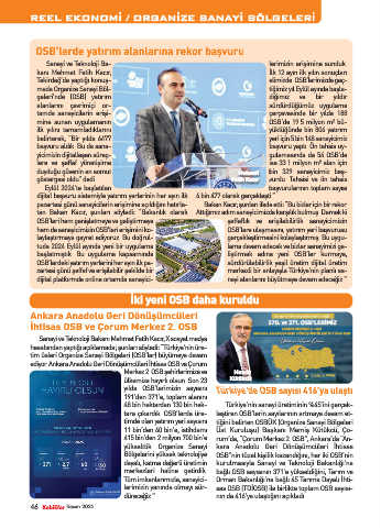 hem de sanayicimizin OSB’leri erişimini ko- OSB’lere ulaşmasını, yatırım yeri başvurusu
