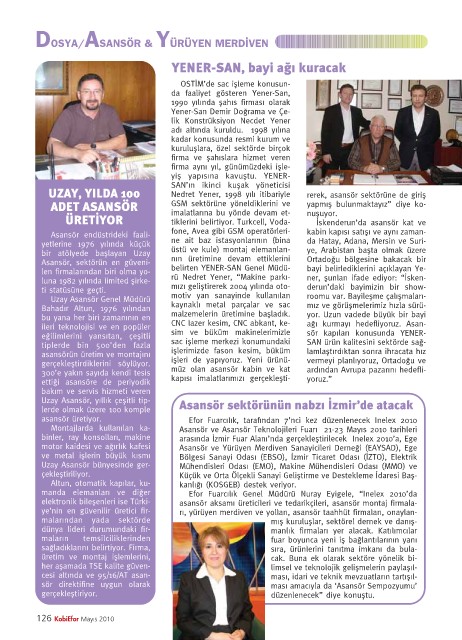 lerde olmak üzere 100 komple Asansör sektörünün nabz› ‹zmir’de atacak