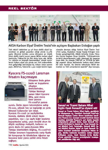 çevre dostu bir yaz›c›.Kyocera Mita nel Müdürü Tar›k Tunal›o¤lu, Renault MA‹S Ge-