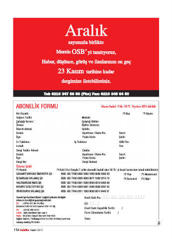 ABONEL‹K FORMU Abone Bedeli: Y›ll›k: 50 TL Fiyatlara KDV dahildir.