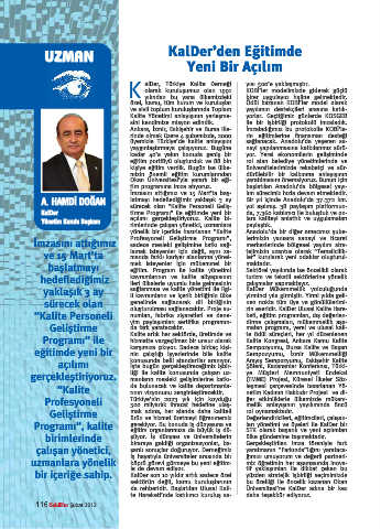 Program›”, kalite gerekiyor. Bu konuda ifl dünyas›na ve lar› yönetimi ve üyeleri ile KalDer bir