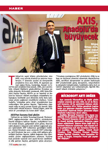 (ERP) sa¤lay›c›lar›ndan olan AXIS’in çözümlerinin yor: “Microsoft Dynamics AX çok önemli bir ürün.