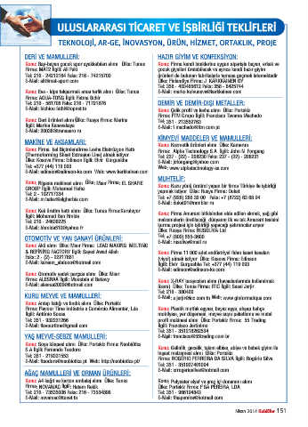 Tel: 216 - 24212164 Faks: 216 - 74215700 ürünleri de bulunan fabrikalarla temasa geçmek istemektedir.