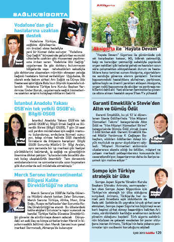 yetkili OSGB’si; Bilgili Ortak Sa¤l›k ve Gü- Ödül ve “Y›l›n Müflteri Hizmetleri Birimi”