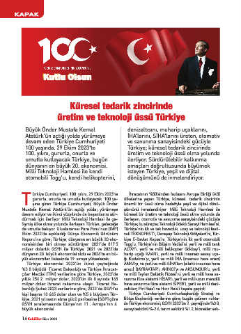 gururla, onurla ve umutla kutlayacak. 100 ya- ülkelerine yapan Türkiye, küresel tedarik zincirinin