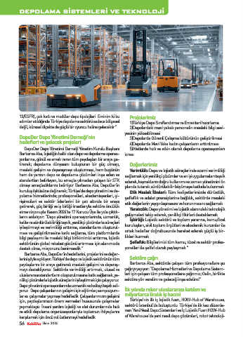 kuruluş öyküsüne değinerek; Türkiye’de depo yönetimi ve de-