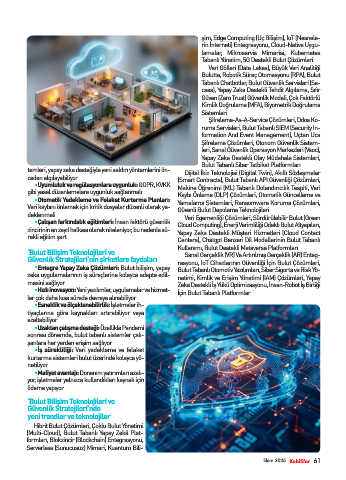 •Entegre Yapay Zeka Çözümleri: Bulut bilişim, yapay