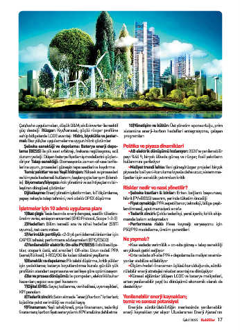 Çatı/saha uygulamaları, düşük O&M; akıllı inverter ile reaktif 10)Yönetişim ve kültür: Üst yönetim sponsorluğu, prim
