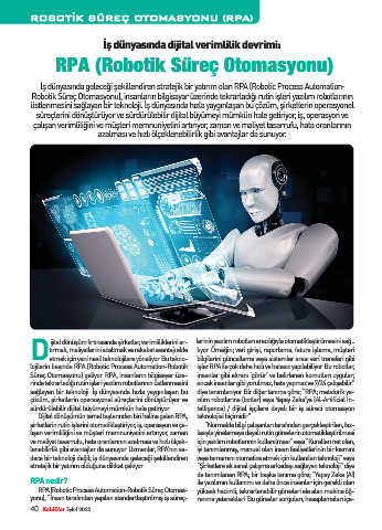 lenebilirlik gibi avantajlar da sunuyor. Uzmanlar, RPA’nın sa- iyi tanımlanmış, manuel olan insan faaliyetlerinin bir kısmını